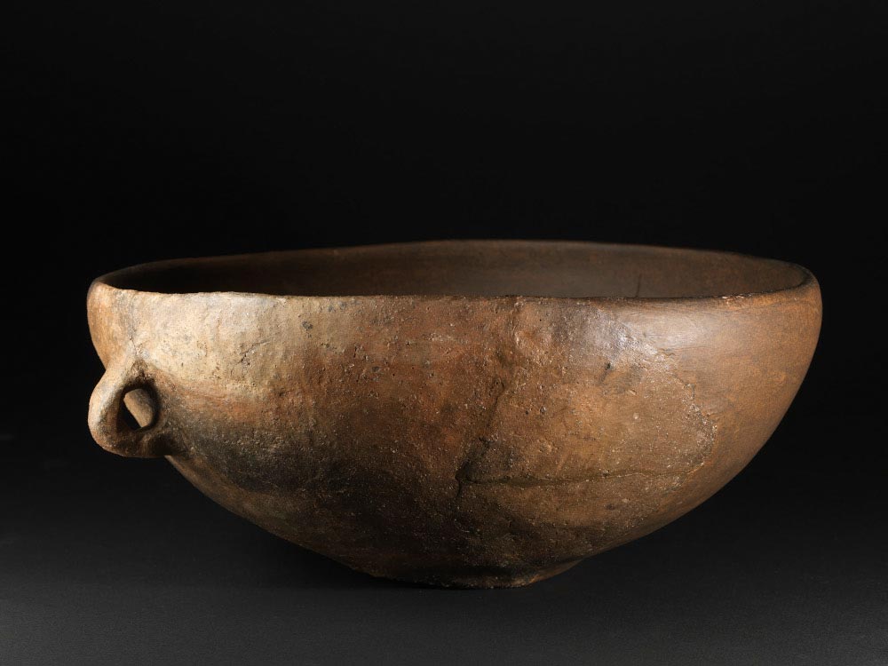 Schale mit Ösenhenkel und innenliegender kreuzförmiger Ritzung, vermutlich späte Glockenbecherkultur, Beilngries, Erweiterungsbau Schmidt-Seeger