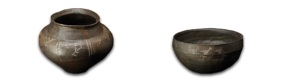 Männern legte man Waffen aus Eisen mit ins Grab. Interessant sind stilisierte Darstellungen von Reitern und schreitenden Vögeln, die auf der Schulter von Gefäßen angebracht waren. Außergewöhnlich ist auch ein Rhyton, ein tiergestaltiges Kultgefäß zur Aufnahme eines berauschenden Getränkes. Ganz deutlich ist das dargestellte Tier nicht zu identifizieren, doch wird es sich wahrscheinlich um einen Stier handeln.